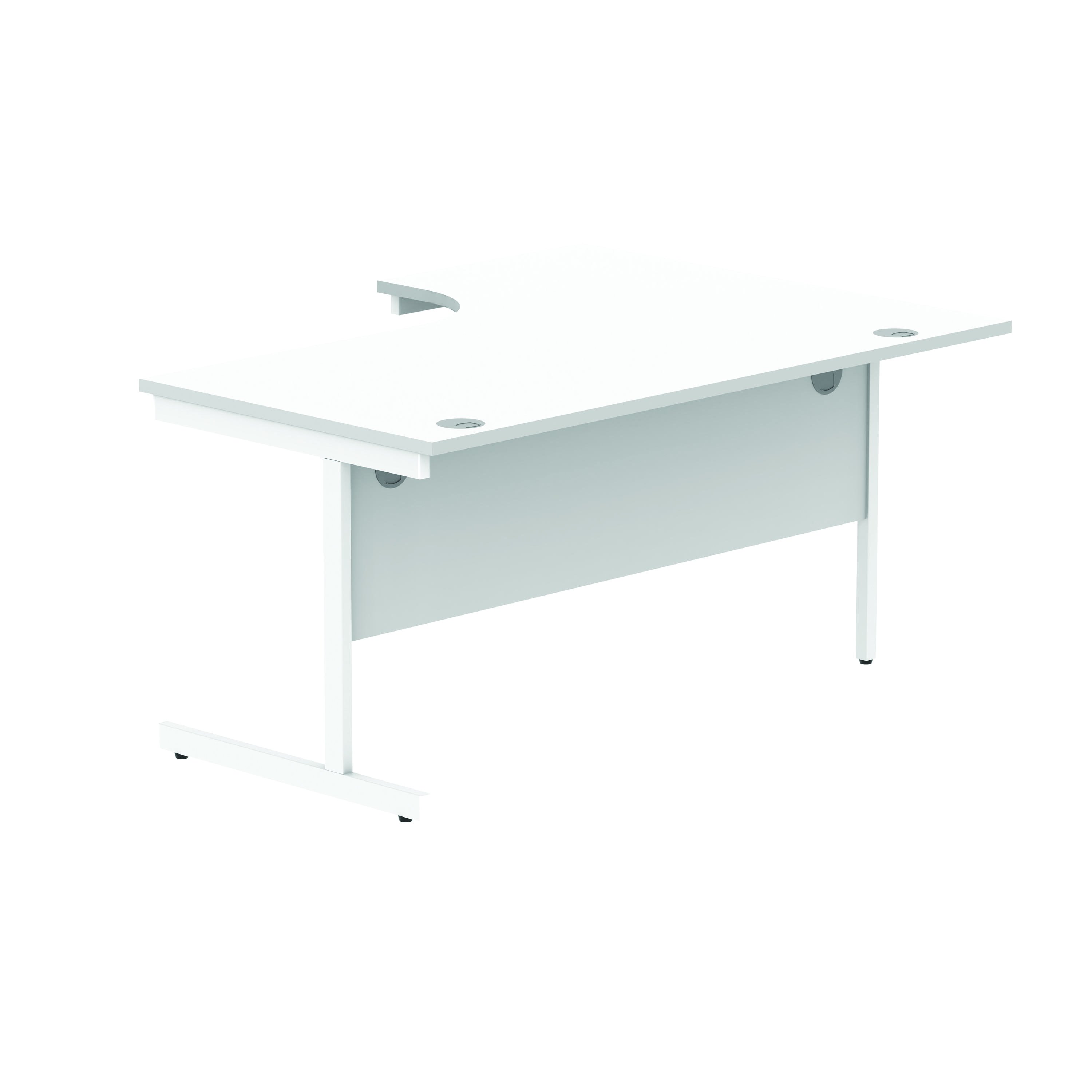 The Astin Radial Single Upright Cantilever Desk offers stability, cost-effectiveness, and space-saving advantages. The modesty panel is included as standard. The desk has a with a 25mm top thickness and is easy to assemble.