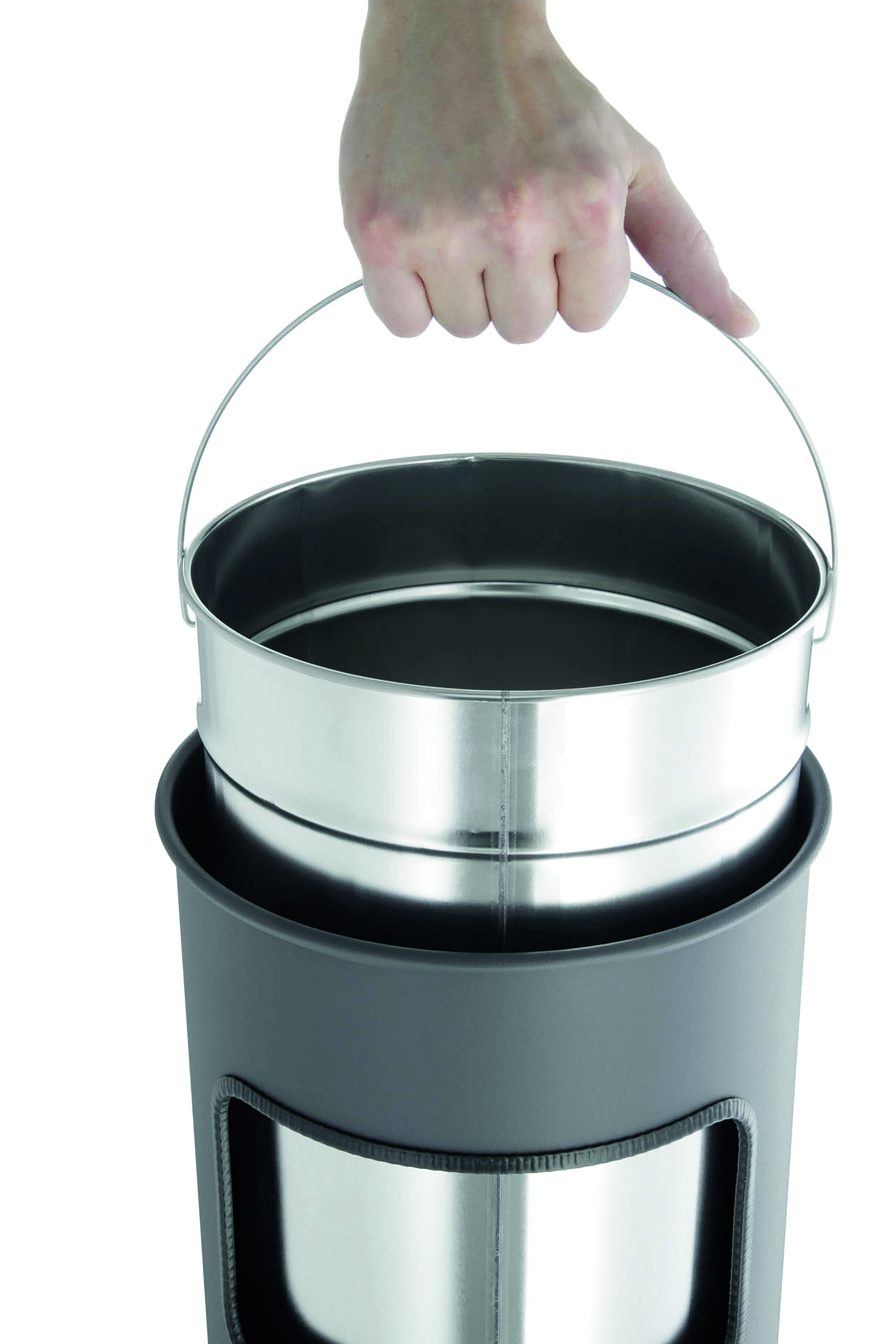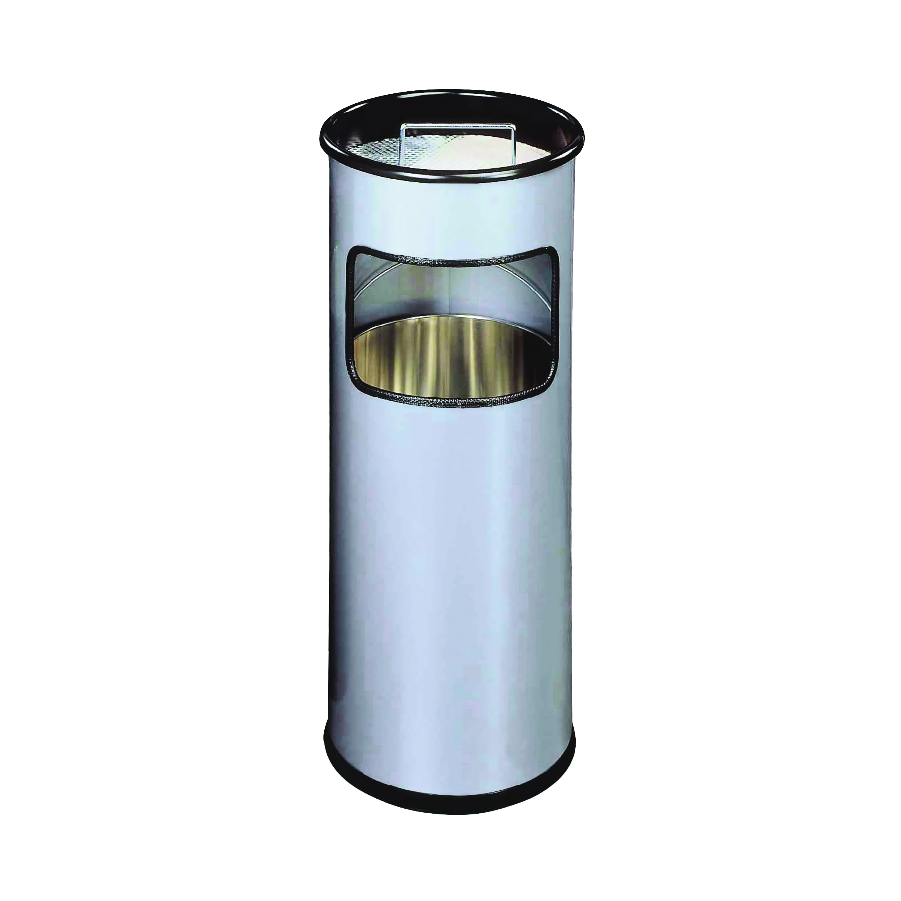 Durable Waste Bin 17 Litre Round With Ashtray Silver 333023